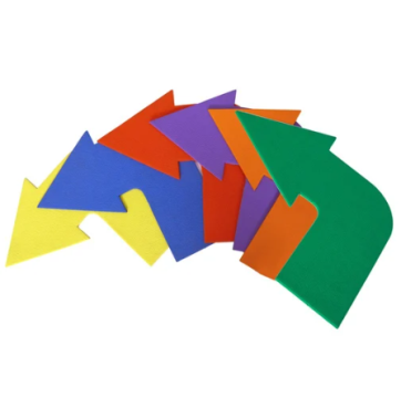 Arrow Floor Marker in Curved shape made of TPR material. Available in Bright and assorted colours. Eco Friendly, Non Toxic, Led and Phthalate Free, Anti Skid Material.