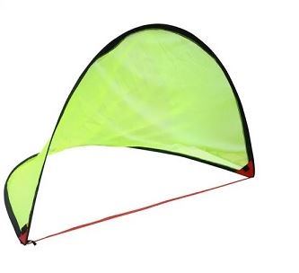 Pop up Goal made of fiber rods with light weighted strong nylon and mesh construction. Comes with ground anchor, pegs and carry bag. It is easy to fold and store. Great for anywhere soccer practice or casual play. Ideal size for kids and teens; safe for players of age 3+; designed for outdoor use; ground stakes and carry bag included. Available in three Different sizes . Sold as a pair. Can be customized as per your requirement.